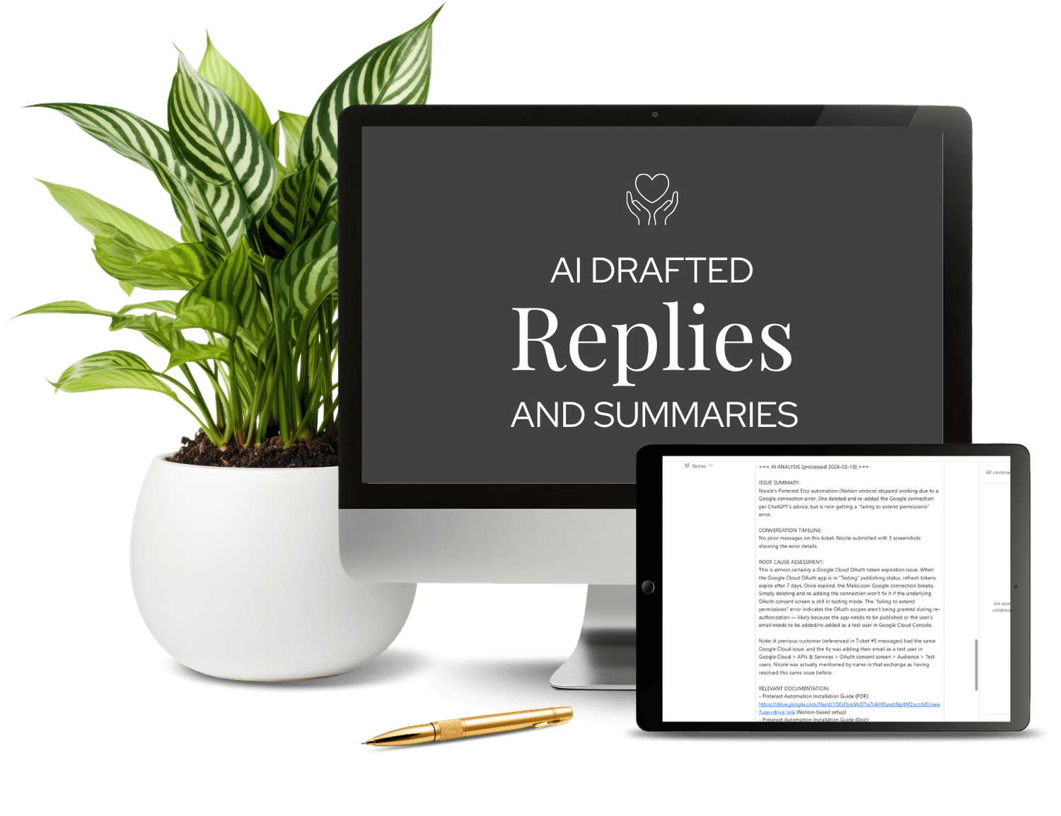 Every time a customer emails you with a question, you have a choice. Reply from memory, copy and paste from somewhere, or spend 10 minutes writing the same answer you've written before. Over time, that adds up. And when things get busy, tickets fall through the cracks.